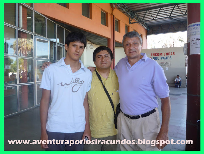 Salí a las 9:30 am, para llegar a las 11 :00 am, hora en que Lenin llegaría de Ecuador para unirse a nosotros y salir rumbo al sur. A eso de las 12 m llego Rene y a la 1 pm llego Lenin, con retraso debido a problemas con el omnibus, pero felizmente llegó , siendo un encuentro emotivo, era la segunda vez que veia a Lenin, ya que años atrás estuvo por aquí , en un homenaje que le rendimos entre los amigos a EDUARDO FRANCO .