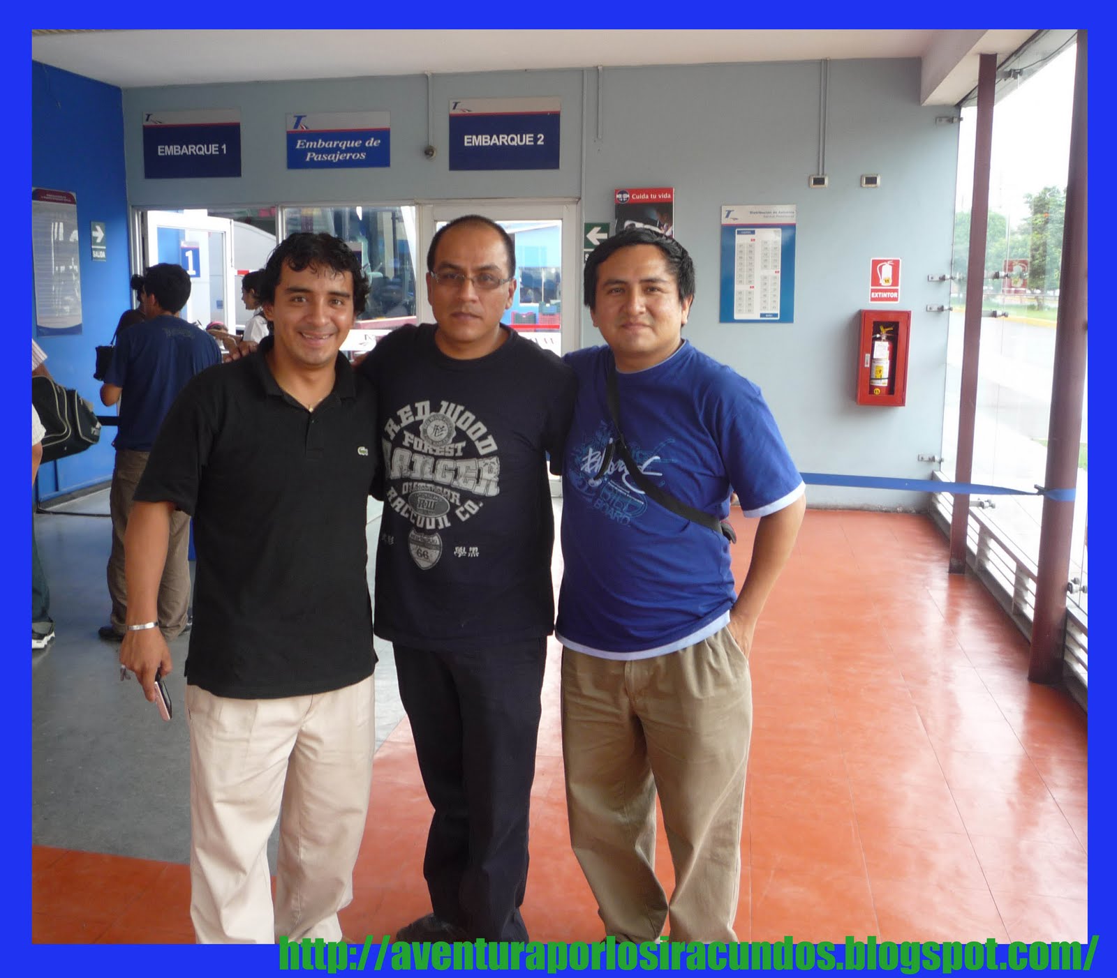 Primera foto del viaje, vemos a Lenin Romero, a Rene Arroyo y Víctor Hugo Azañero en la estación .